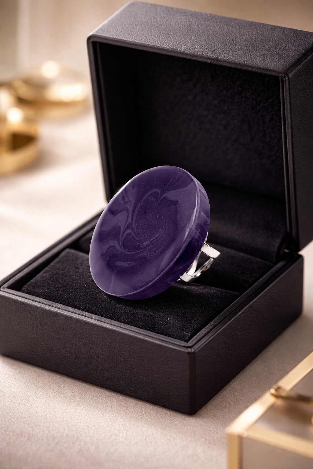 Anel banhado a ródio com resina