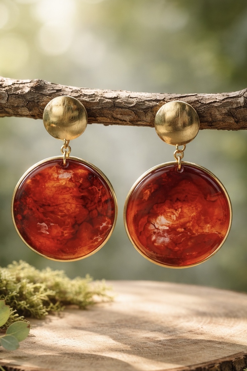 Brincos banhados a ouro com resina